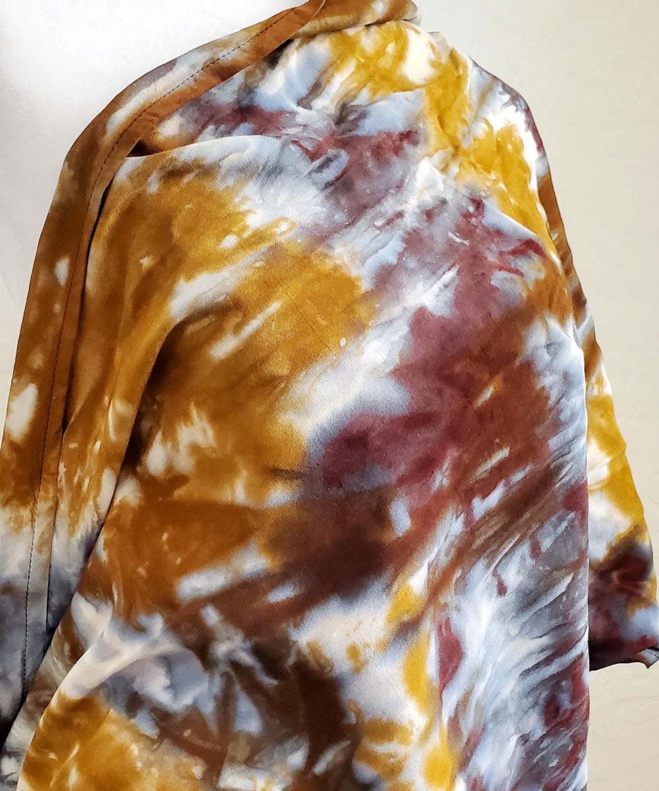 Jeanne intricately hand-dyes each item with love and care, making them completely one-of-a-kind. The variations in our tie dye clothing are what makes them truly unique, beautiful, and completely original. Some dye speckling is normal, and a part of the magic.