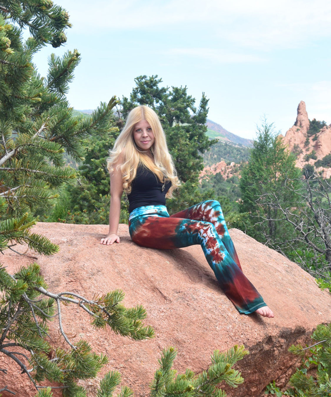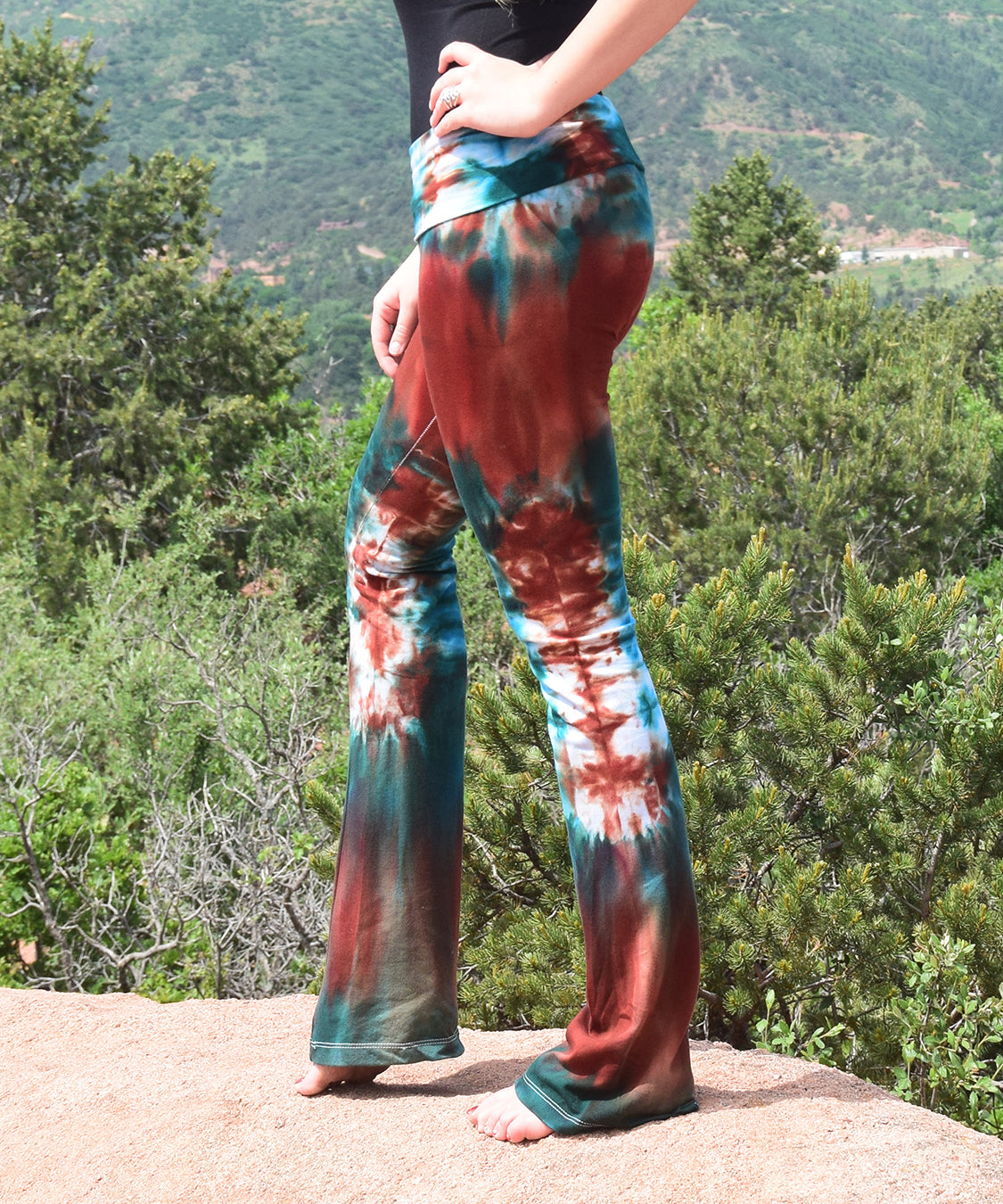 The Cheyenne yoga pants feature rich hues of terracotta with turquoise accents. This isn't your typical tie-dye. This is a statement. A work of art. Something you aren't going to find at the store, and it's completely one-of-a-kind. The variations in our hand-dyed clothing are what makes them truly unique, beautiful, and completely original. Because of this, your clothing may vary from what you see in the photo.