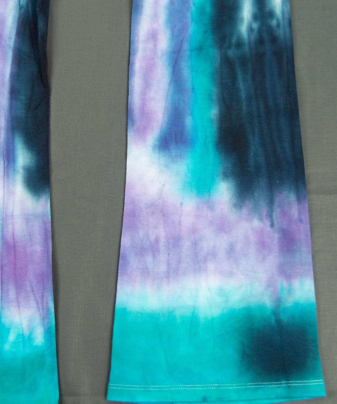 Jeanne intricately hand-dyes each item with love and care, making them completely one-of-a-kind. The variations in our tie dye clothing are what makes them truly unique, beautiful, and completely original. Some dye speckling is normal, and a part of the magic.