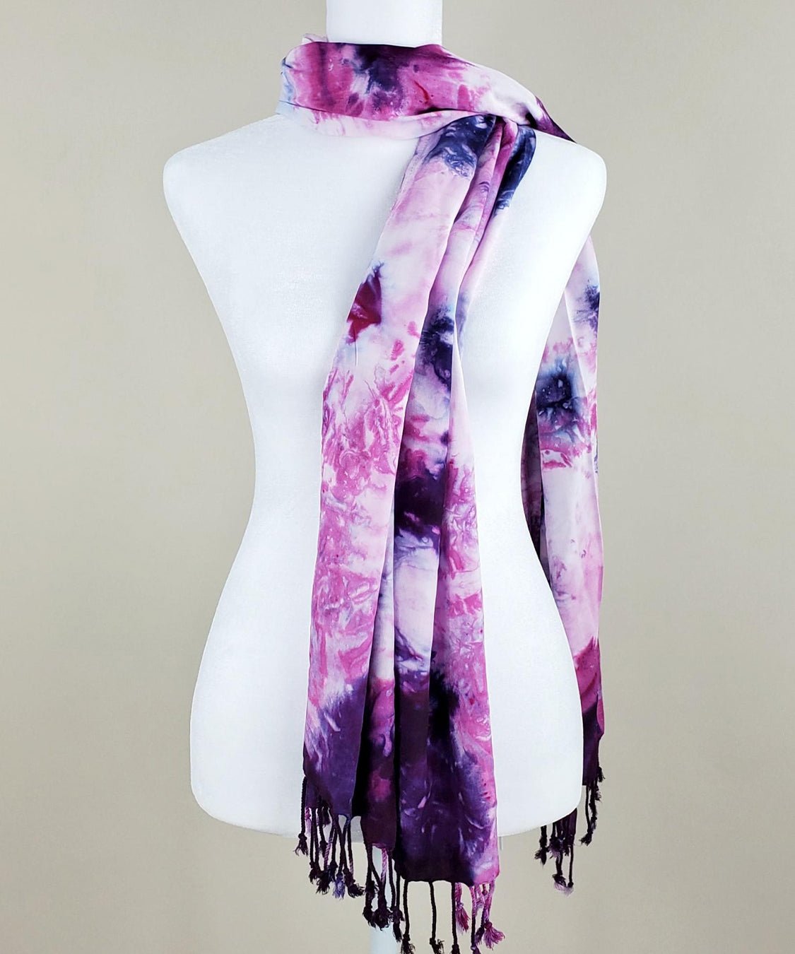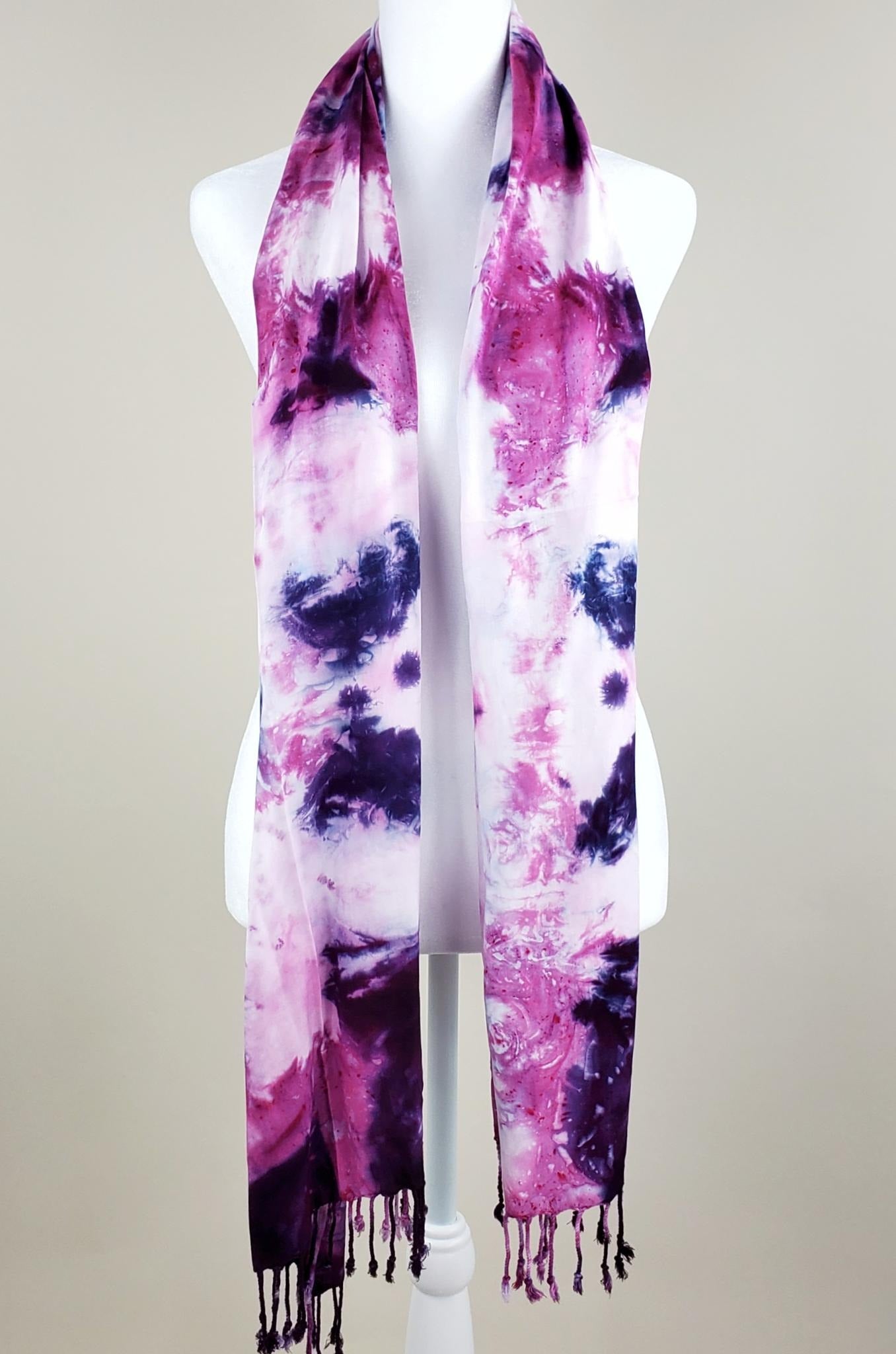 Our scarves are the most luxurious, soft thing to touch your skin. They are nice and lightweight, making them ideal for a number of uses. They can be worn over a mask as a fashionable face covering, they make wonderful wraps for the head or body, or they can be worn the traditional way around the neck. Features fringe detailing.