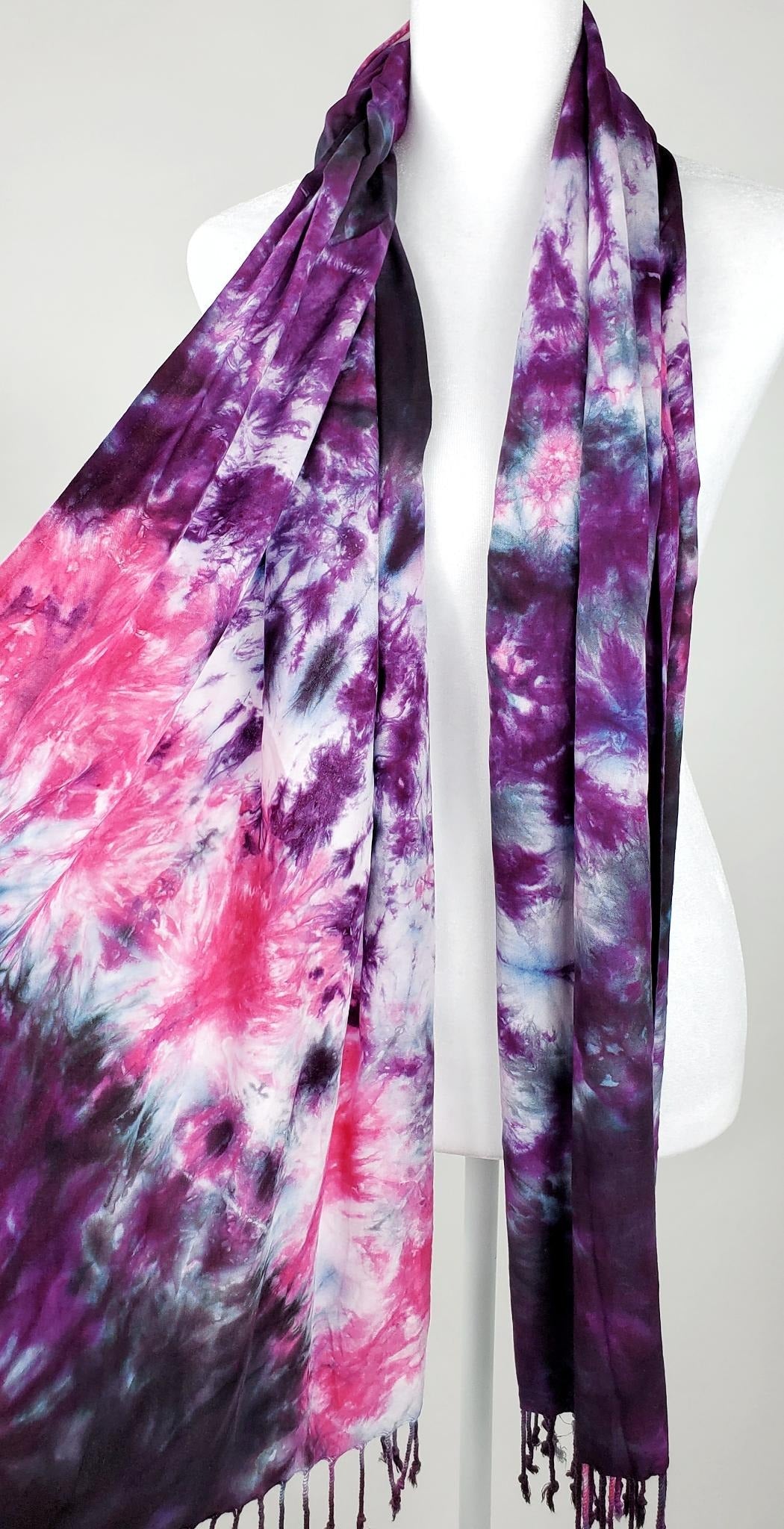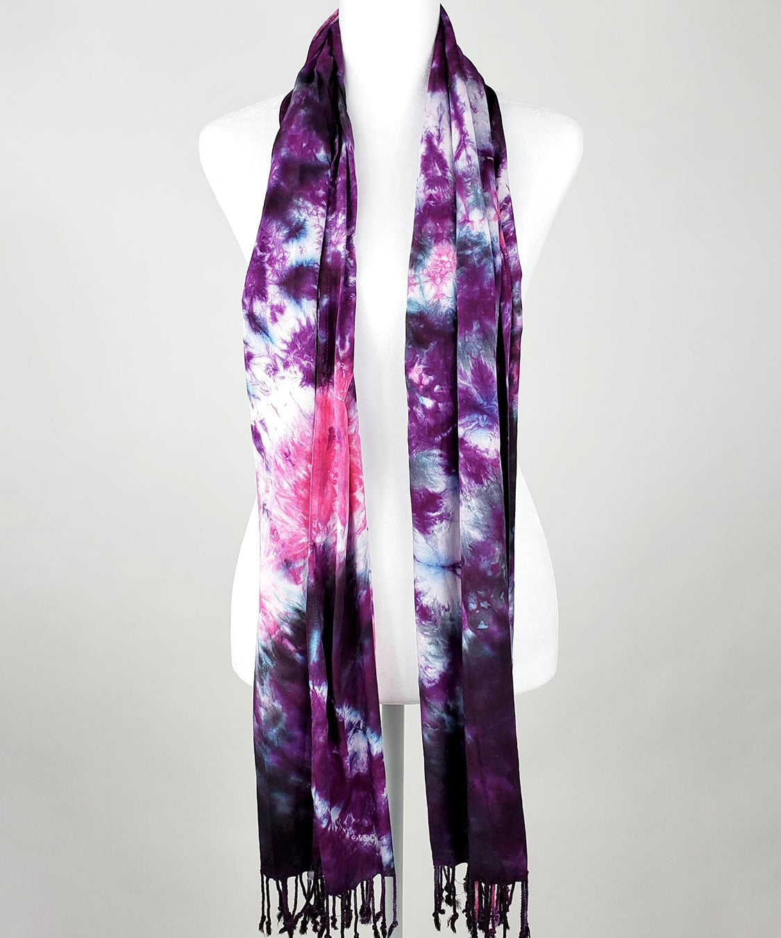Our scarves are the most luxurious, soft thing to touch your skin. They are nice and lightweight, making them ideal for a number of uses. They can be worn over a mask as a fashionable face covering, they make wonderful wraps for the head or body, or they can be worn the traditional way around the neck. Features fringe detailing.