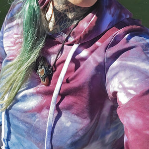 my second one of these [cropped hoodies] they're flattering and a great layer piece. I needed two because I never wanted to take the first one off! beautiful dye job and nice material. thanks!!!