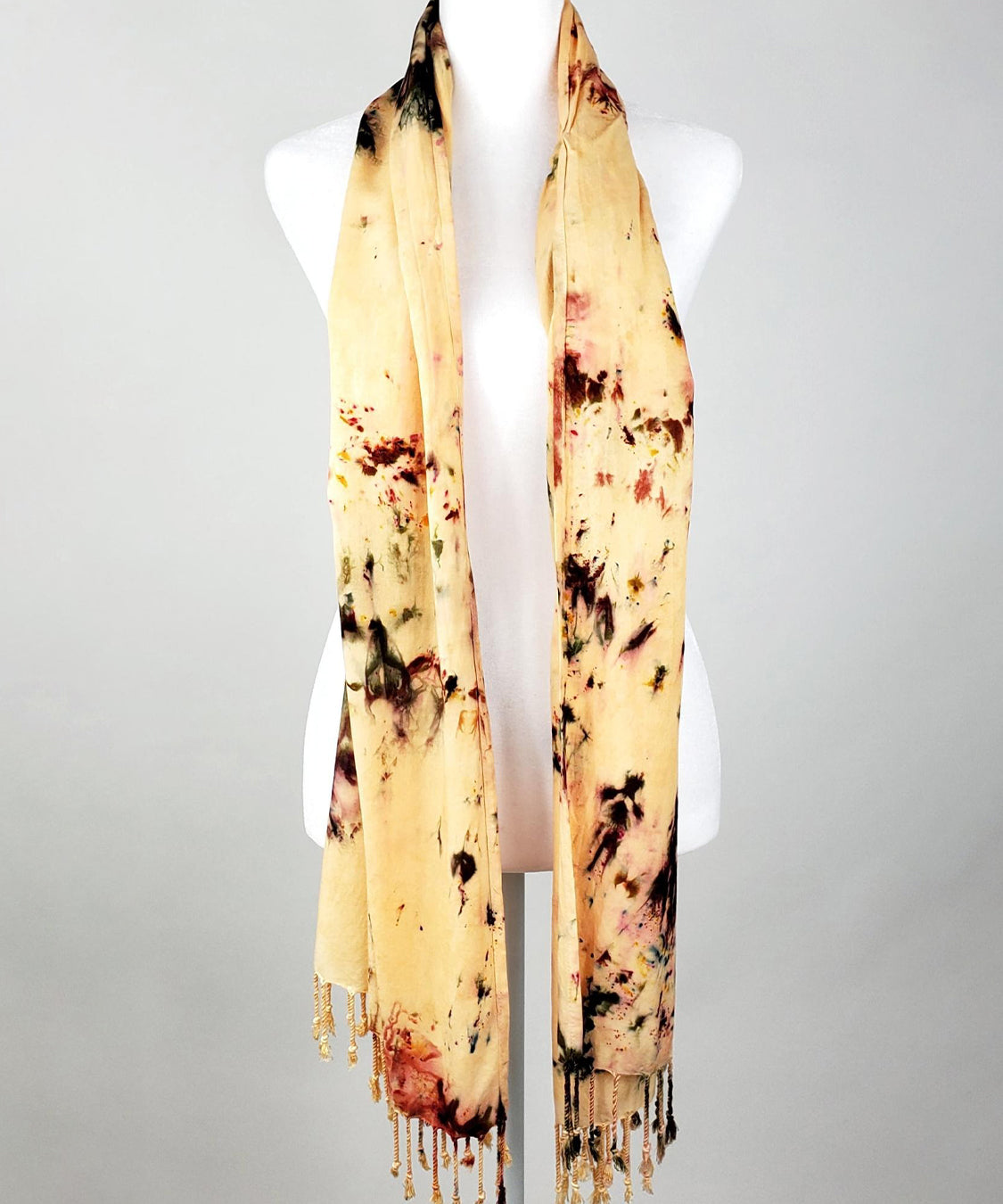 Our scarves are the most luxurious, soft thing to touch your skin. They are nice and lightweight, making them ideal for a number of uses. They can be worn over a mask as a fashionable face covering, they make wonderful wraps for the head or body, or they can be worn the traditional way around the neck. Features fringe detailing.