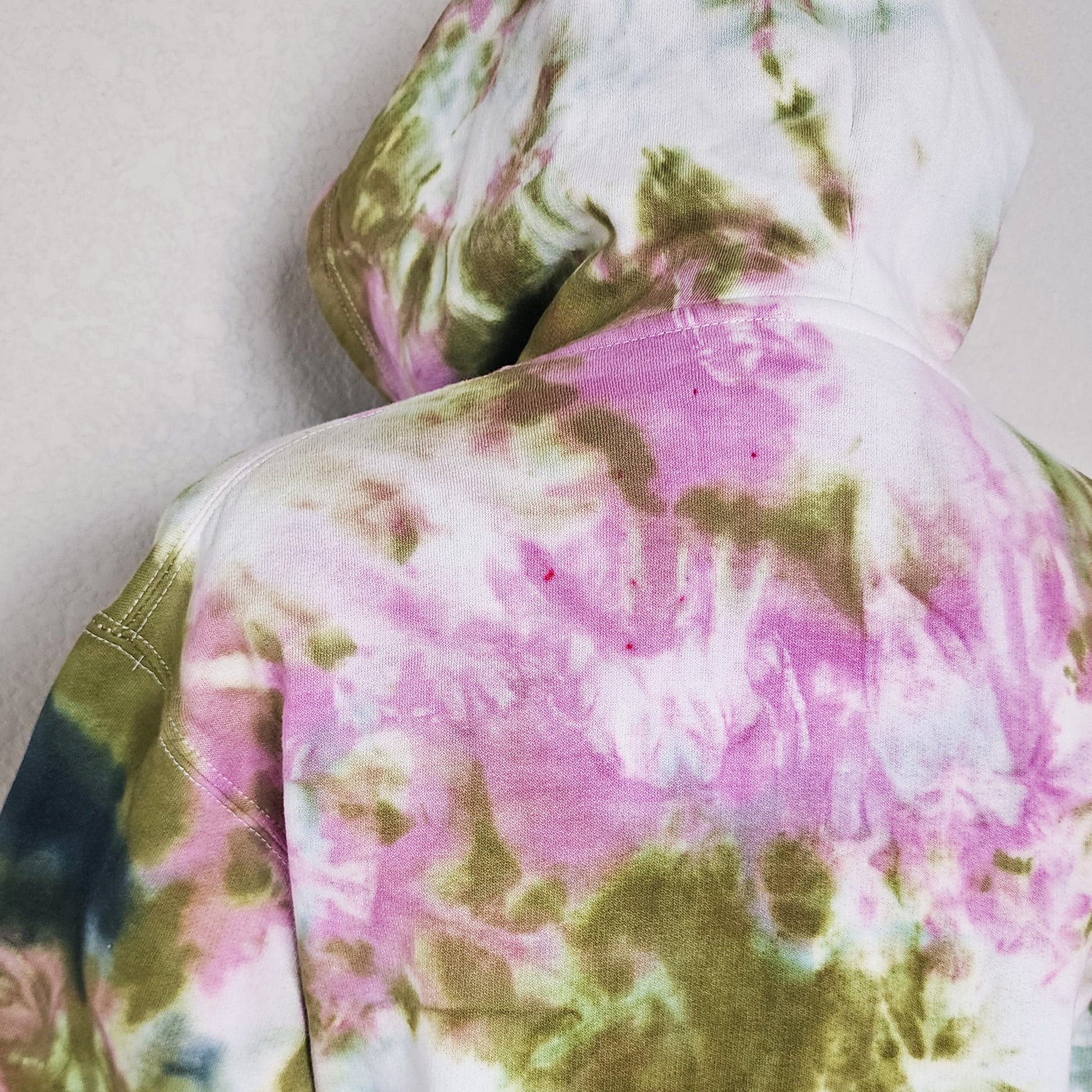 Every hoodie is intricately hand-designed with intention by our mother-daughter team in Colorado, making it a completely original work of wearable art. Guided by intuition and the natural flow of the dye, no two pieces are ever the same. The garment pictured is the exact, unique piece you will receive.